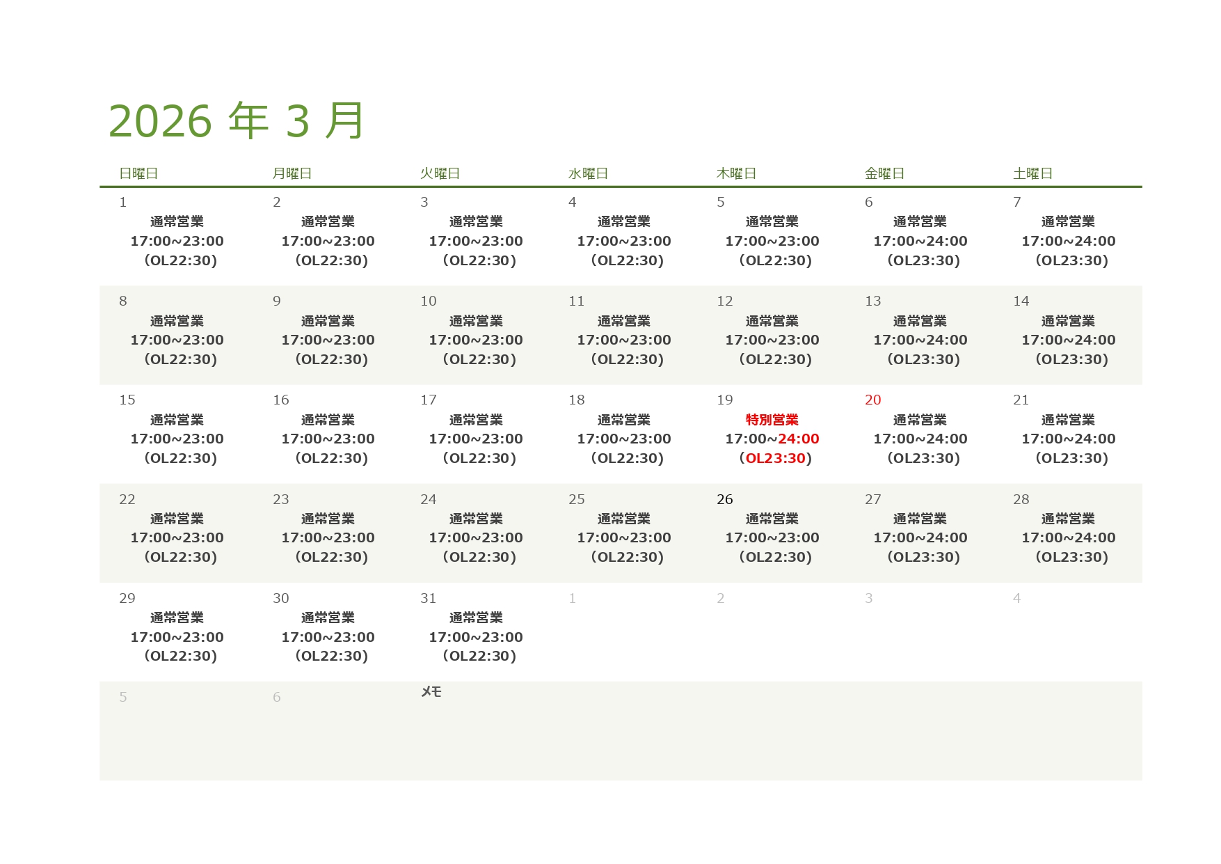 ※今月の特別営業は、祝前日の3月19日(木)です!